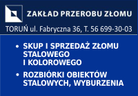 ZAKŁAD PRZEROBU ZŁOMU w Toruniu oferuje: skup i sprzedaż złomu stalowego i kolorowego, rozbiórki i demontaż konstrukcji i obiektów stalowych. Podstawiamy kontenery na złom.